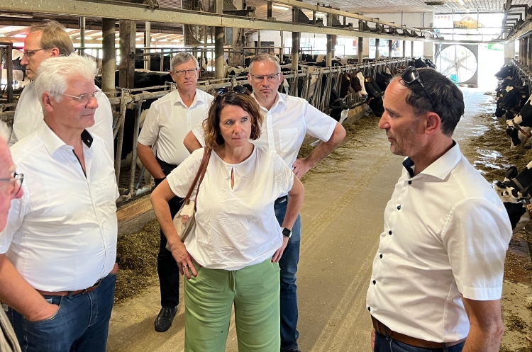 Anschließend waren wir zu Gast auf dem Erlebnishof der Familie Dreher in Lampertsweiler. Der Betrieb verbindet auf beeindruckende Weise moderne Landwirtschaft mit Tourismus und Energieerzeugung. Neben modernster Technik für die rund 120 Milchkühe versorgt der Hof mit seiner Biogasanlage rund 80 Haushalte mit Wärme und ist im Sommer energetisch oft autark.