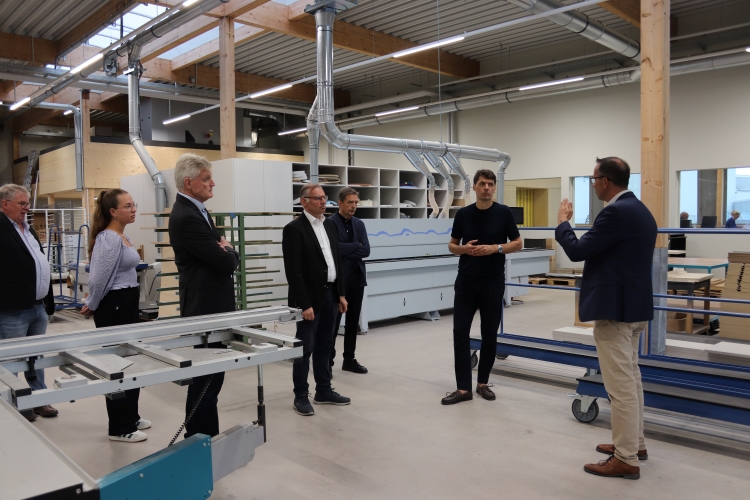 Auch Bürgermeister Achim Deinet und Stadtkämmerer Carsten Kubot, die die holzwerk GmbH vom Kauf des Grundstücks bis zur Eröffnung des Gebäudes begleitet haben, machten sich vor Ort ein Bild der gelungenen Ansiedelung. Für die Coworking-Arbeitsplätze und die Comaking-Produktionswerkstatt, die Selbständige anmieten können, erhielt das Unternehmen eine LEADER-Förderung. Neben Synergieeffekten sollen durch die bessere Auslastung auch die Kosten reduziert und die Nachhaltigkeit gefördert werden. Auch aus dem Entwicklungsprogramm Ländlicher Raum (ELR) des Landes Baden-Württemberg flossen Fördermittel. Das Investitionsvolumen umfasste zwei Millionen Euro. Eine Erweiterung des Betriebs ist auf dem Grundstück möglich.